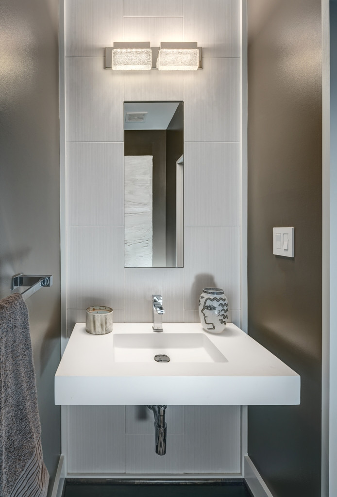 Consider a dark earth tone, such as deep brown or charcoal gray. While i generally prefer neutral colors for the main living areas of the home (with pops of color in the accessories to jazz things up), the one place that i love to go vibrant on is the powder room. Restyling a powder room in a brand new home And to make the powder room look more appealing, hang a mirror with distinctive design over the pedestal.